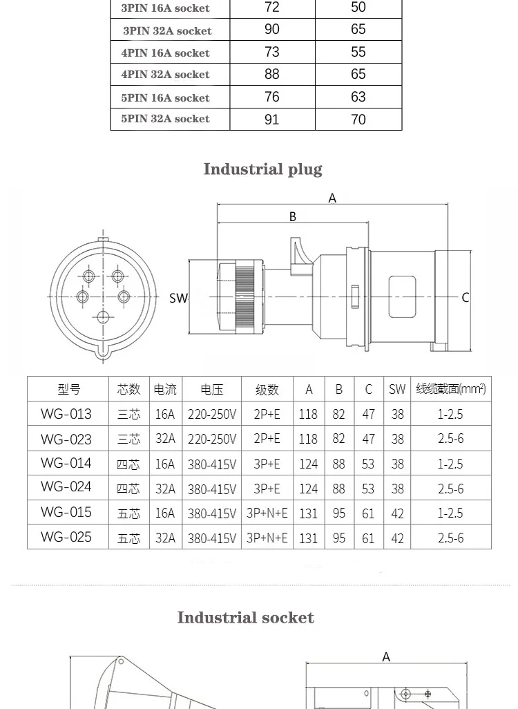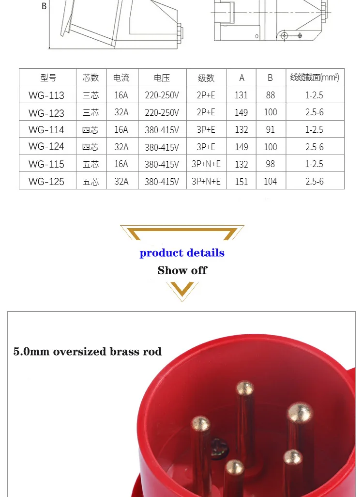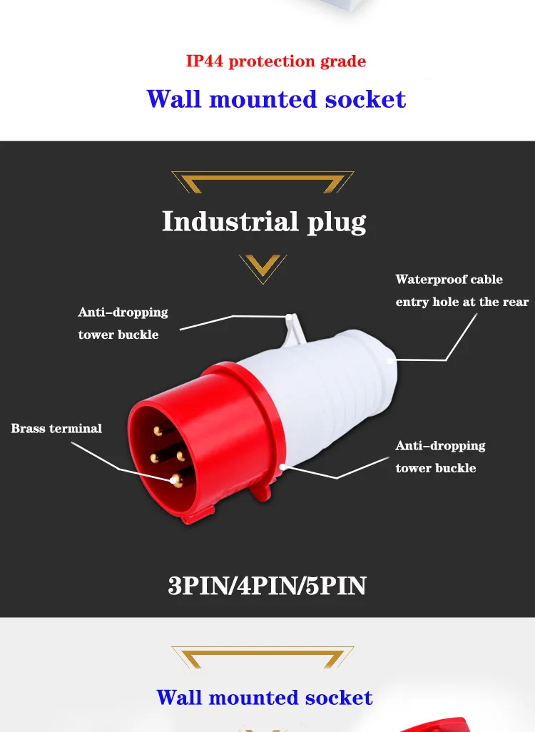 Plugue e tomada industrial - conector à prova d'água